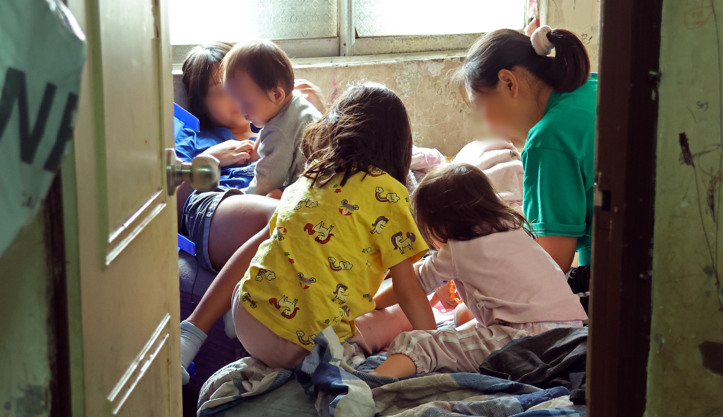 小檸檬一家六口擠在頂樓狹小房間,爸爸用紙板膠帶補天花板,卻擋不住雨水。發霉的牆、泡爛的床墊、裸露的彈簧,甚至劃傷過孩子。生活不只住得不安穩,連吃也常常只有花椰菜和豆腐充飢。