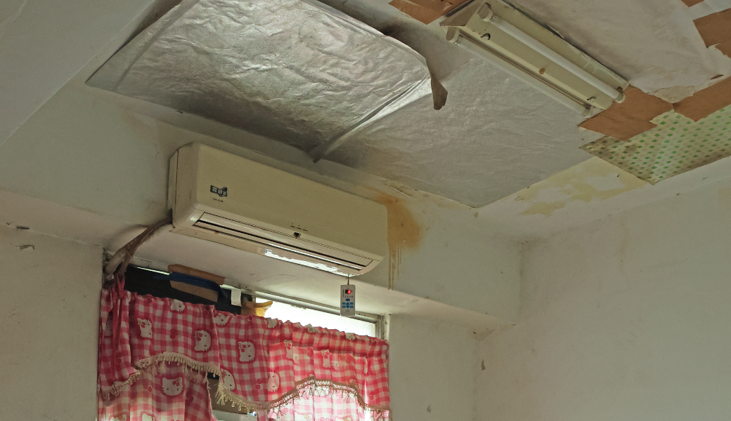 但幾張紙和膠帶擋不住無情的雨水,黏不住牆上的裂縫,梅雨季一來,牆壁發霉變黑,水珠順著裂縫滴落,啪嗒啪嗒敲在房間裡。一家六口擠在一張床上,床墊早已泡爛,床板潮濕發軟,裸露的彈簧,甚至劃傷過小檸檬,爸媽看著心疼,卻無能為力。