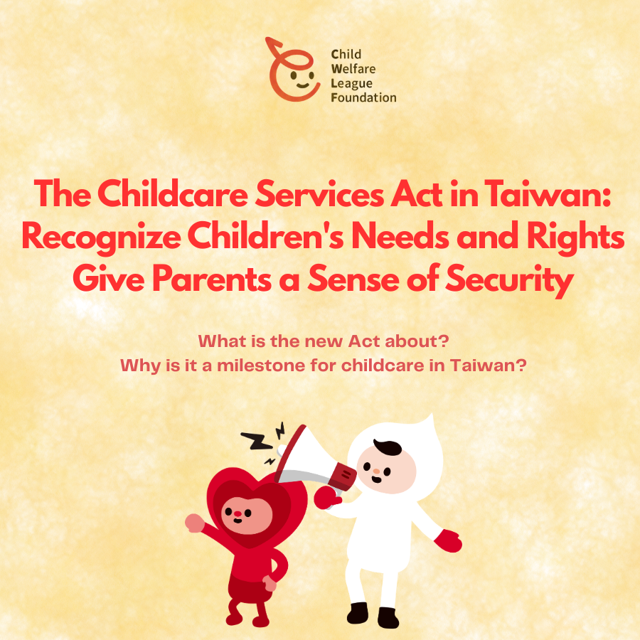 After five years of advocacy, the Childcare Services Act was finally passed in its third reading by the Legislative Yuan on April 14th. In response, the Child Welfare League Foundation (CWLF) sincerely thanks lawmakers from all parties, as well as the civic groups involved in the amendment process, for their collaborative efforts. We hope that once the new Act comes into effect, it will better support parents in balancing childcare and work, ensuring that children receive improved care.