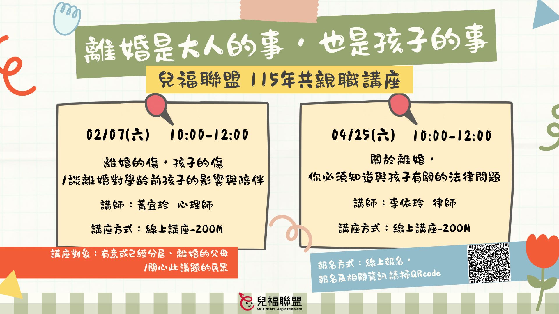 【活動資訊】115年共親職講座〈離婚是大人的事,也是孩子的事〉