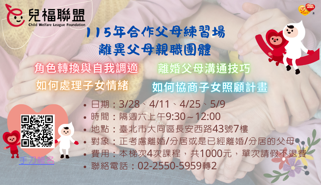 【台北】合作父母練習場:離異父母親職團體(115年第一梯次)