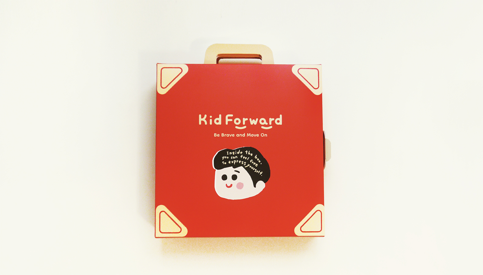 小孩向前行(Kid Forward)設定的目標對象為六至十二歲的孩童,需考量到實用與安全性。「新旅途工具包(New Journey Toolkit)」承重佳並保護內容物,展示時亦有視覺優勢。包裝盒環保低成本、出貨便利;孩童好攜帶,操作、收納皆安心無虞。工具包內含繪本、日記本、吊飾三項商品,代表認知、抒發、陪伴三項功能,幫助孩童完整調適生活上的新轉變。