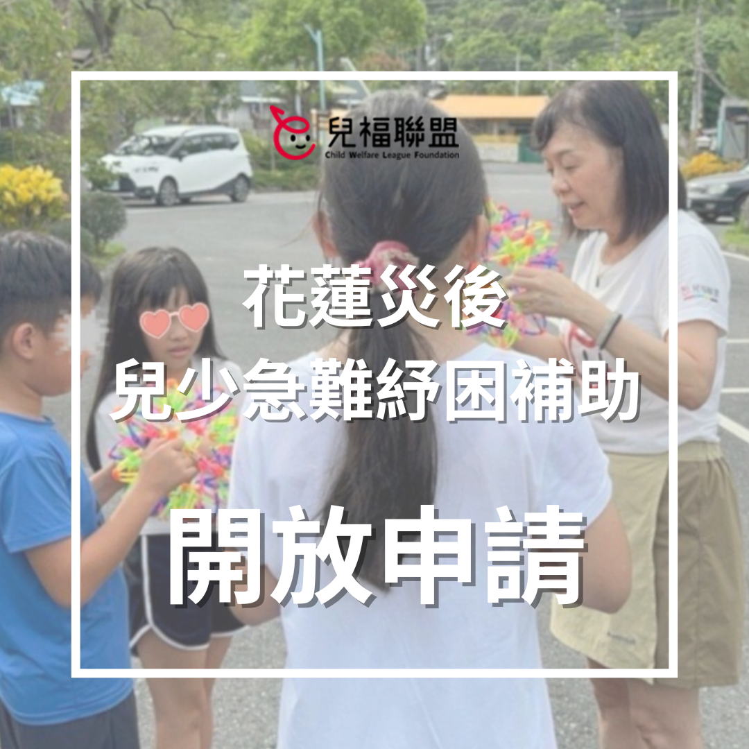 兒盟啟動 「花蓮0923災後兒少急難紓困補助」,除了透過在地合作的學校申請,提供給有需要的學童外,也將提供有需求的家庭申請。
