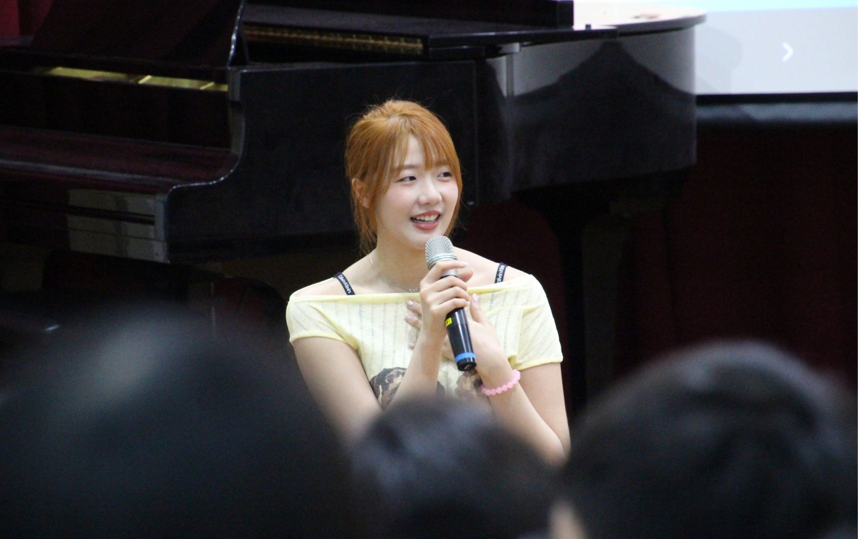 在互動時間,幾位同學踴躍發言,氣氛輕鬆又真誠。有人分享最想和喜歡的人做的事是「一起騎腳踏車」,引來現場一片驚呼與笑聲,泰菈也忍不住笑說:「青春的粉紅泡泡真的太濃了!」