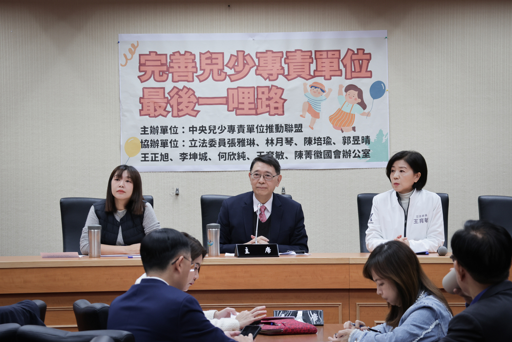 由兒福聯盟、家扶基金會、台灣展翅協會、兒科醫學會、兒童健康聯盟、台少盟、安置盟、台灣防暴聯盟、還我特色公園行動聯盟、世界心理健康聯盟、台灣心理健康聯盟、中華心理衛生協會、中華育幼機構兒童關懷協會、兒少權心會、更生少年關懷協會、至善基金會、孩子的書屋基金會、靖娟基金會、勵馨基金會、現代婦女基金會、婦女救援基金會、台北市基督教教會聯合會(乘風少年)、基督教勵友中心、臺灣一滴優教育協會、臺灣青年民主協會、台大兒家中心等26個民間團體組成的「中央兒少專責單位推動聯盟」(簡稱兒推盟),與跨黨派立委張雅琳、林月琴、王育敏、陳菁徽、張啓楷、郭昱晴、廖偉翔、王正旭、李坤城、蘇巧慧及時代力量新竹市議員蔡惠婷等人,今(15)日上午在立法院召開「完善兒少專責單位,最後一哩路」記者會,對政府提出三大提問與四大訴求,邀請衛福部次長呂建德現場回應,並呼籲政府應加大兒家署業務整合與創新的力道,編列充足的預算與人力,建立民間參與及兒少表意的常態機制,也建議行政院未來應增設兒少事務委員會,仿照日本政府設立「兒童及家庭廳」的做法,提升中央兒少專責單位的層級與功能,真正實現「兒少優先、增援家庭,跨域整合、把餅做大」的目標。