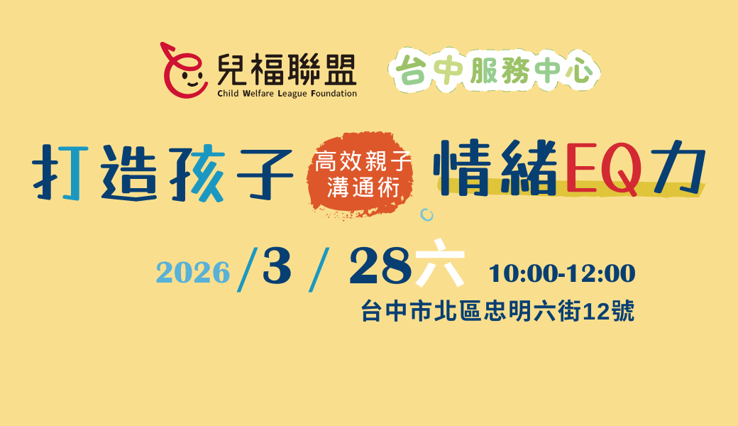 📍活動地點:兒福聯盟台中服務中心(台中市北區忠明六街12號)