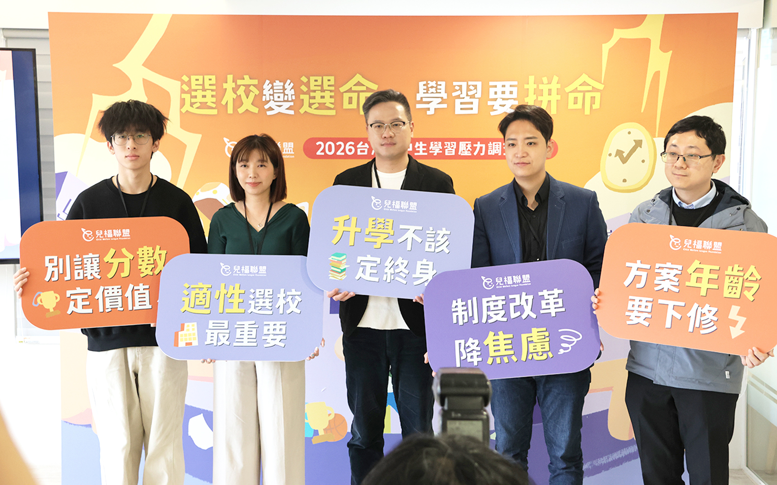 在這場「小聯考」前夕,兒福聯盟(以下簡稱兒盟)於今(2)日舉辦「選校變選命,學習要拼命」記者會,由兒盟政策發展處李宏文副處長發表《2026臺灣國中生學習壓力調查報告》,並邀請立委張雅琳、立委羅廷瑋、EdYouth臺灣一滴優教育協會洪振翔常務理事及國立臺北教育大學心理與諮商學系陳柏霖教授,一同剖析這場升學窄門下的「生存遊戲」,如何轉化為壓垮孩子身心健康的最後一根稻草,並共商緩解方案。