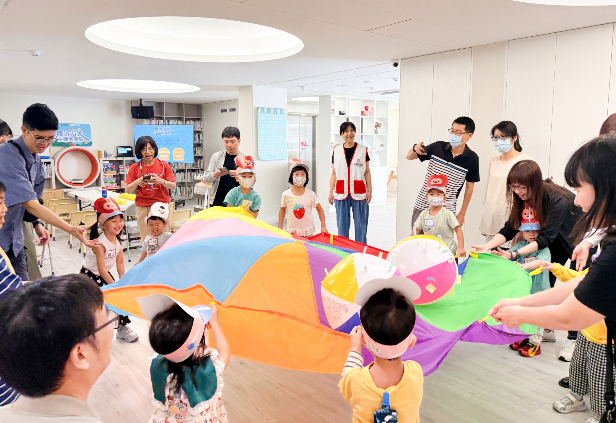 在氣球傘環節,親子共同將象徵壓力的便利貼清除,透過具體行動練習釋放壓力,現場氣氛熱絡。